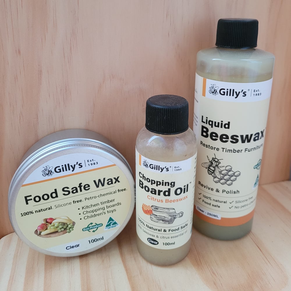 *note chopping board oil 100ml and liquid beexwax 250ml is same product, just in different size bottle.